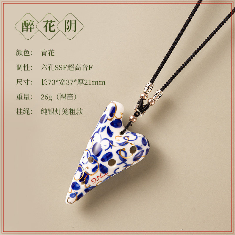TNG6孔迷你枪型青花瓷描金吊坠陶笛